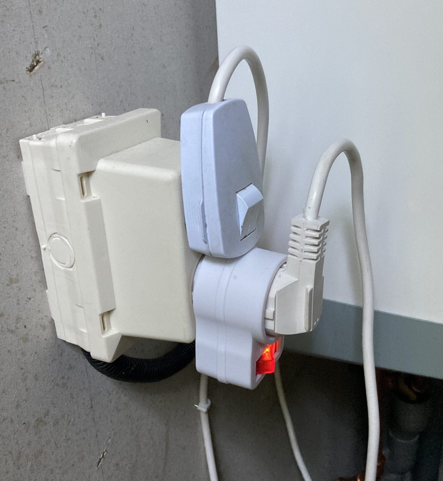 Deze schakelaar in de huiskamer achter de lekkere stoel zet de stroom op de TV en de verlichting aan.